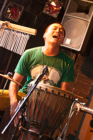 ドラムとパーカッション:ハナムラ鼓動ヒデノリ